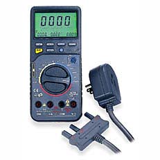 - Complete with test leads, 3-prong socket/plug power adapter, in-circuit test leads, datalogging software, type K temperature probe, 9V battery, and carrying case