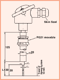spring-loaded PG21 screw connection (not oiltight) |