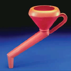 Offset spout makes hard-to-reach filler caps easily accessible when transferring solvents or other fluids. 2" (51 mm) fine mesh, bronze filter screen traps contaminants, and can easily be removed for cleaning. Inward-flanged bowl tip prevents spills. Stem is offset 8" (204 mm) center-to-center at a 60¨¬ angle from vertical and tapers to 7/8" (2 mm). Includes reinforced handle. 1 qt (1 L) capacity. 5" x 6" (127 mm x 152 mm) oval top opening, 4" (102 mm) deep cone.