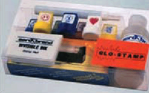 Everything needed for UV fluorescent identification and inspection, ideal for field or lab use. The UV Fluorescent Inspection Kit contains one battery operated UV light, one stamp pad, 7 different inspection stamps, one marking pen, and one 4 oz bottle of non-toxic invisible ink. Ideal for the first time user, it offers ease of use, affordability and portability.