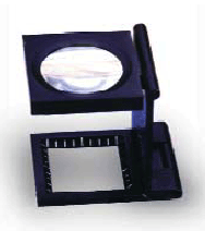 Folding magnifier with 6 power magnification and durable acrylic lens. Protective